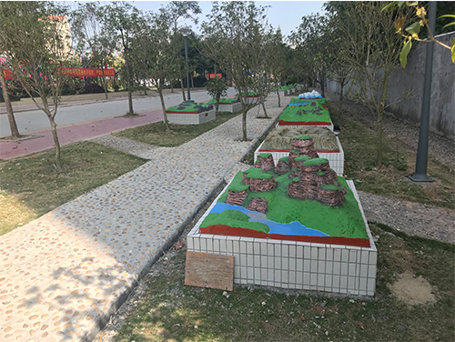 把地理園建設成為集地理教學、校園美化、科學普及為一體的多功能園地,使綠化和科教互相融合,相輔相成,力求簡潔,大方,精致。
